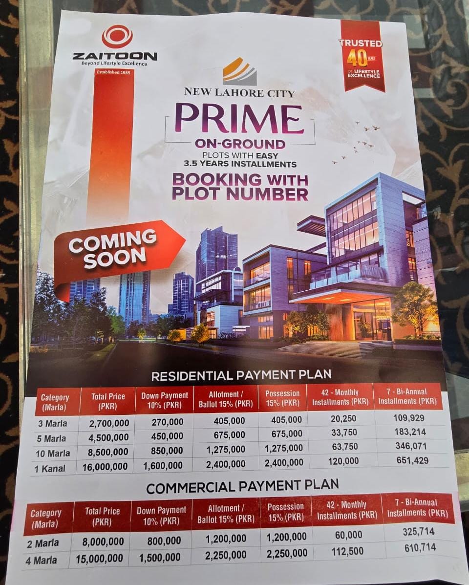 The payment plan is highly affordable for investors. New Lahore City Housing Scheme plots for sale are available at budget-friendly prices as follows: