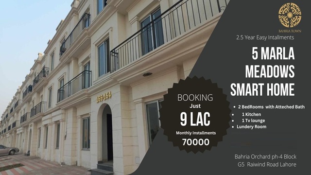Looking for a 5 Marla townhouse for sale on installment in Lahore? Meadows Smart Homes, developed by Athar Associates, brings a modern housing solution in Bahria Orchard Phase 4 that combines luxury, practicality, and affordability. These townhouses are ideal for families seeking quality living in a peaceful and well-planned community.
